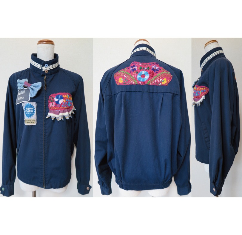 後ろ身頃、胸元には鮮やかなメキシコ刺繍を縫い付けました。